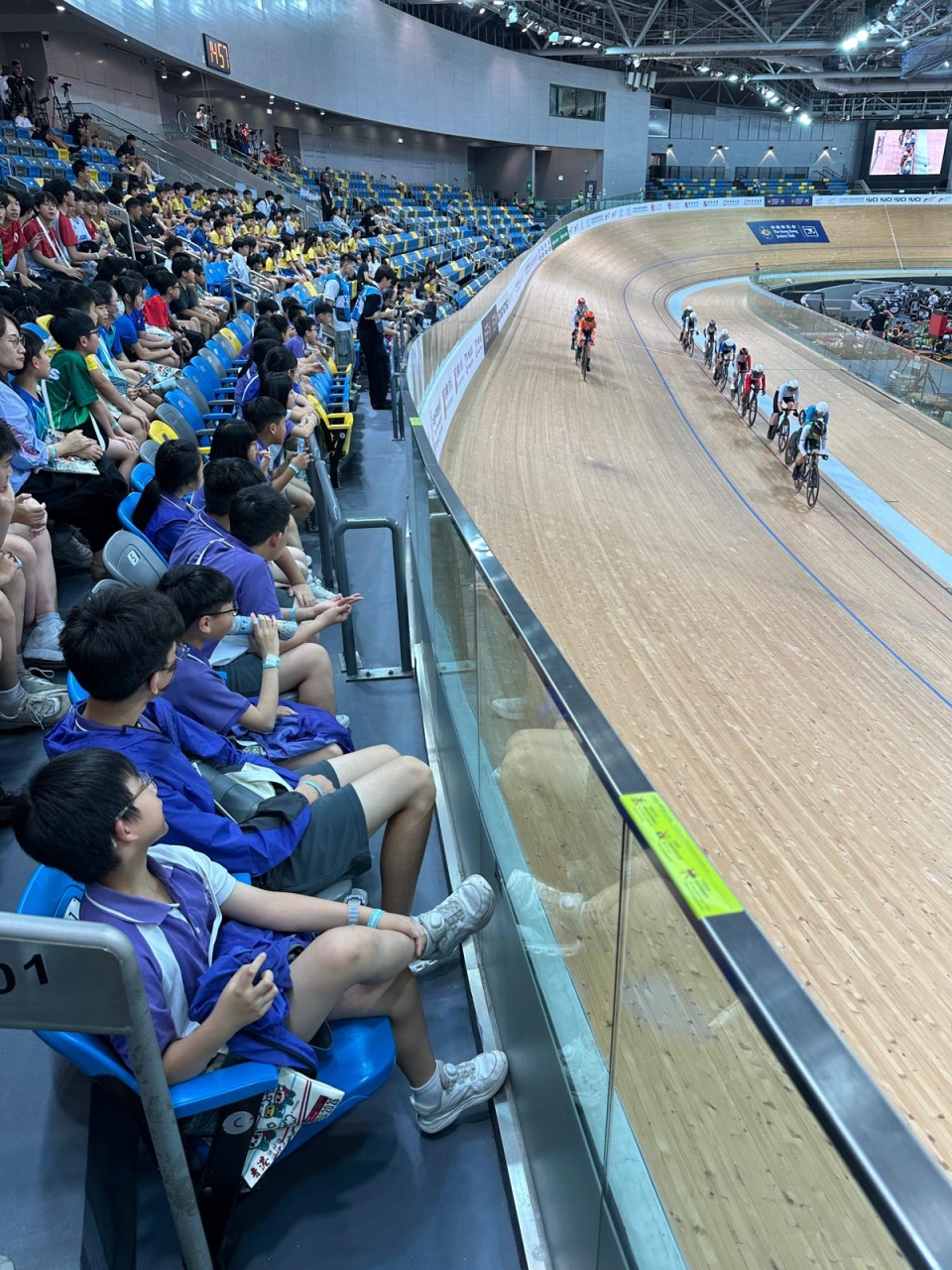為推動單車運動文化並增廣見聞,本校鄧家東老師於 4 月 18 日(星期六)帶領 20 多位同學,前往將軍澳香港單車館參加「2026 UCI 世界盃場地單車賽(中國香港)」比賽導賞活動 。