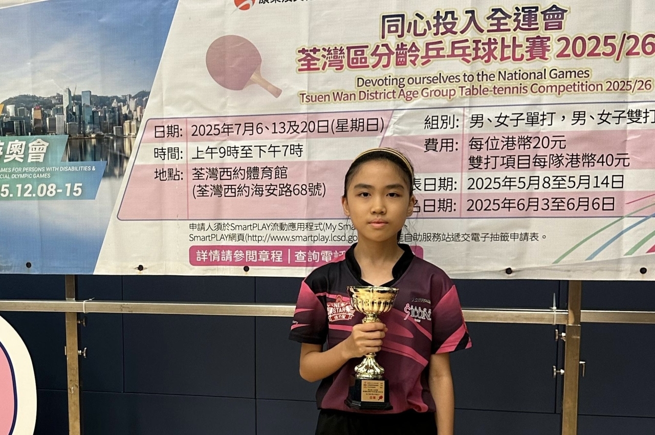 (10) 4D謝展博在屯門區分齡乒乓球比賽2025獲殿軍。