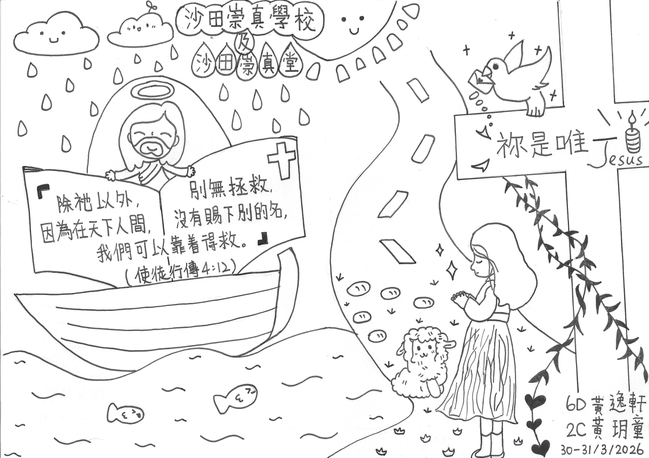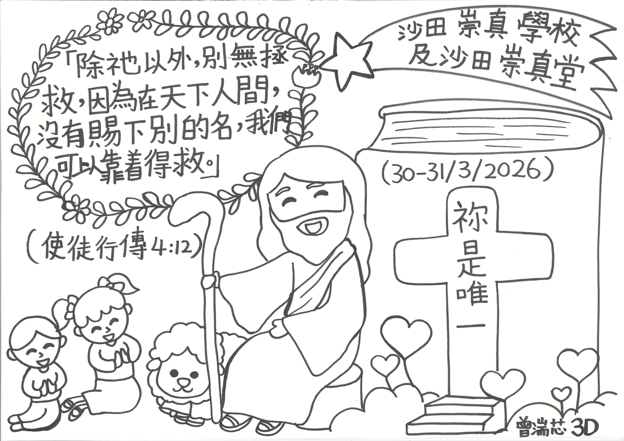 一連兩天的福音周終於完滿結束,今年主題是「祢是唯一」,活動包括聖經問答比賽、創意寫作、手工、書展、歷奇、填色及書法、手冊遊戲及解碼、佈道會及復活節崇拜。同學透過不同的活動,認識主耶穌就是唯一拯救我們的主,並且願意在佈道會中決志信主,讓生命得著改變。