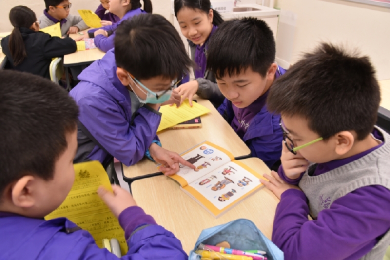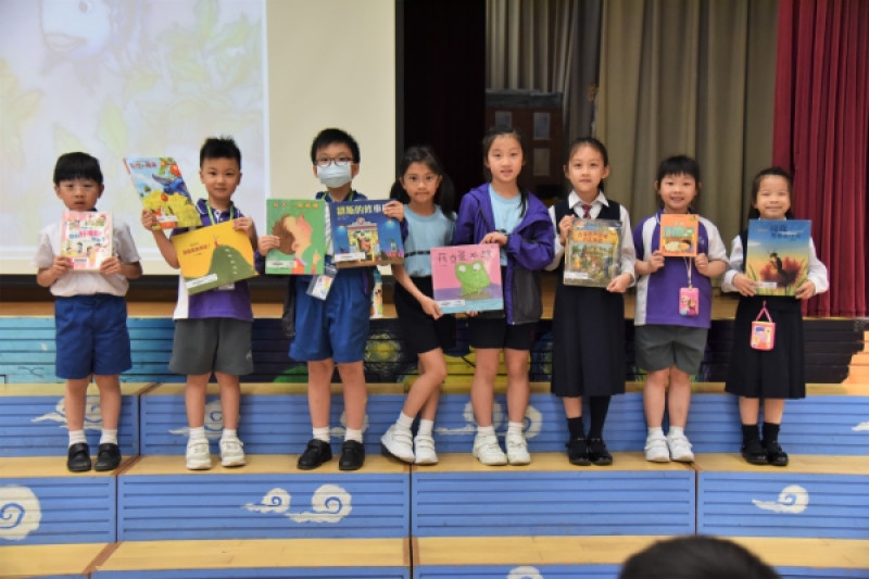 「故事姨姨叔叔」說故事為本校其中一項推動閱讀的重點活動,此活動深受全校學生歡迎。由家長義工組成的說故事團隊「故事姨姨叔叔」精挑細選德育或生命教育繪本、用心製作道具、認真綵排,走進課室為一至六年級學生說故事,讓學生從有趣又有意義的故事中學習互助互愛、誠實守信、知足珍惜等正面的品德觀、生命觀。「故事姨姨叔叔」更會親手製作小禮物、自費購買小吃或文具送贈學生,讓學生在早晨能享受聆聽故事的樂趣,也能感受故事姨姨叔叔對他們的愛護,展開愉快學習的一天。