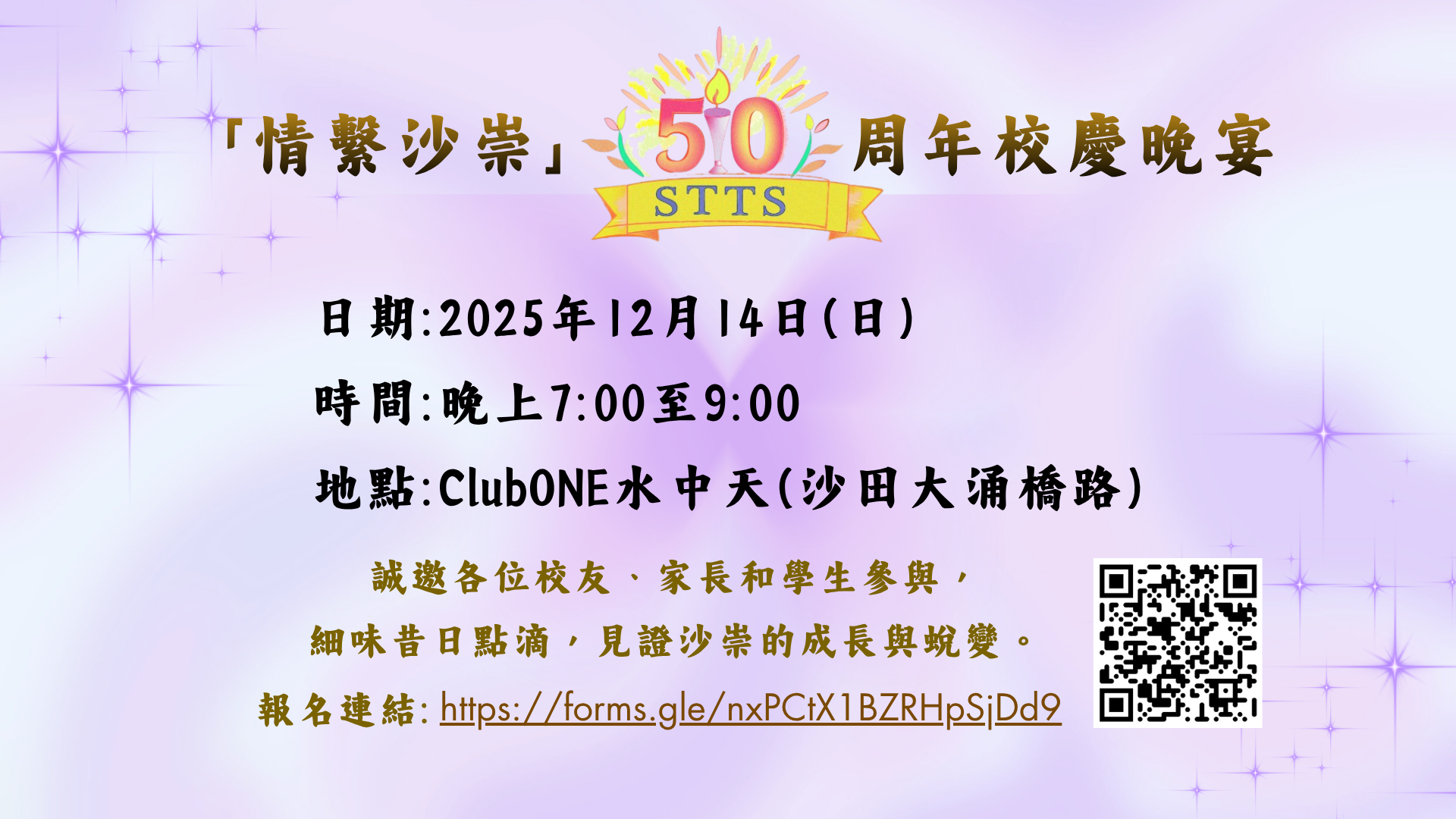 20/10/2025沙崇50周年校慶綜藝晚會*感恩與圓滿的夜晚——「Pass It On」* 經過用心的籌備,以「Pass It On(傳承不息)」為主題的50周年綜藝晚會,... -