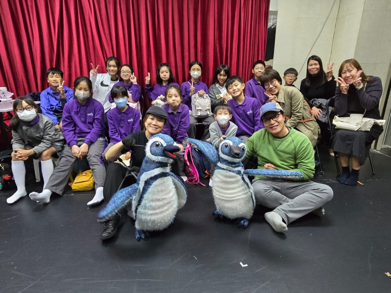 上星期六下午,校長、何老師及冰冰老師帶領戲偶進階班同學前往偶友街作劇團綵排室,觀摩該團即將公演的劇目《來回1600公里──小企鵝要回家》。