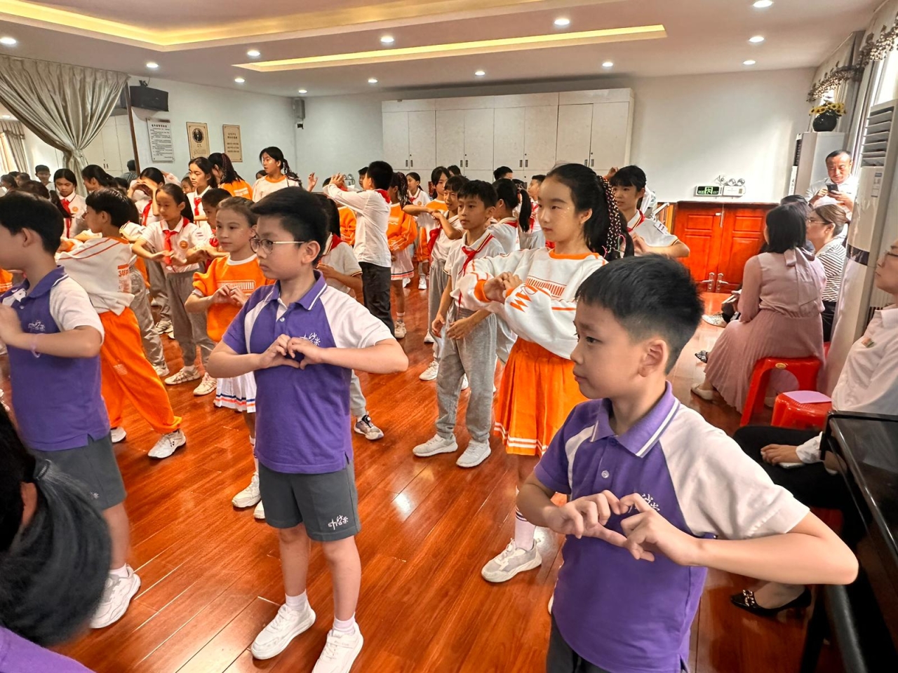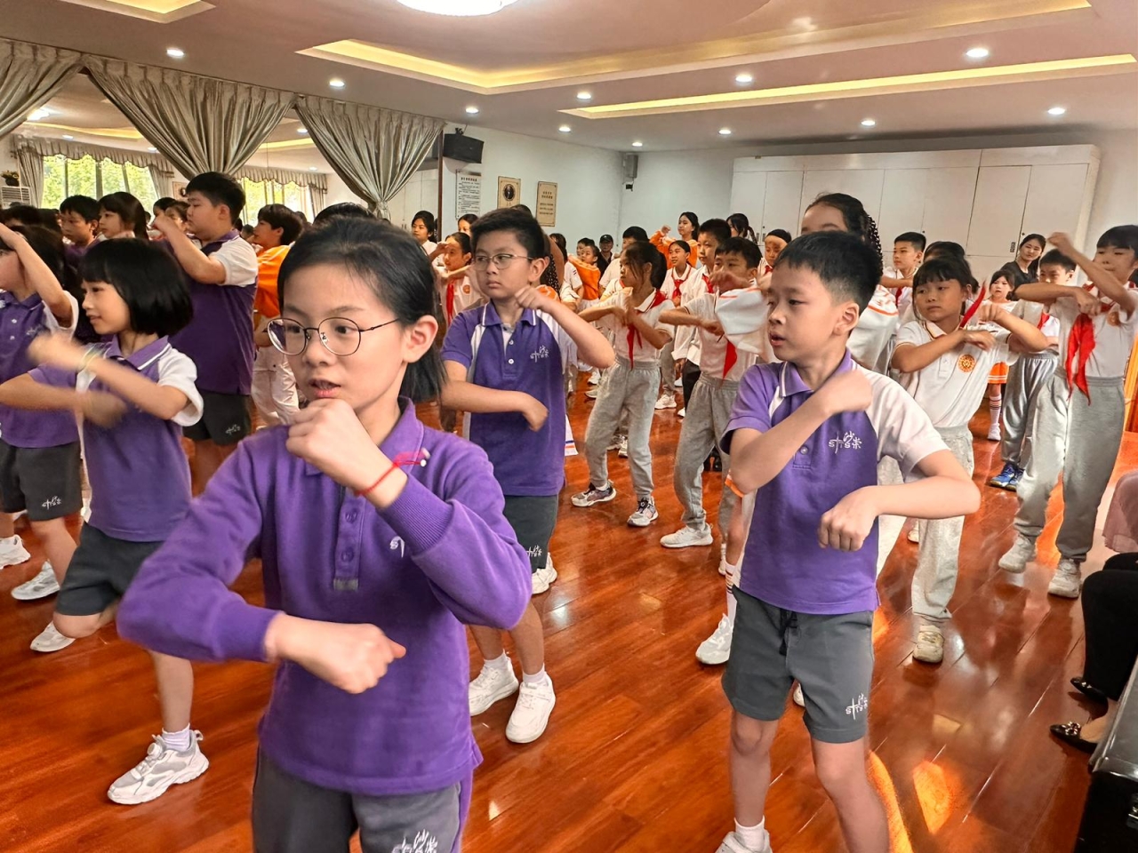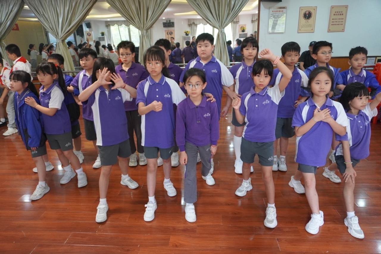 華康小學的街舞指導老師及街舞隊更帶領兩校同學一起唱跳第十五屆全運會會歌《氣勢如虹》,大家都非常投入!