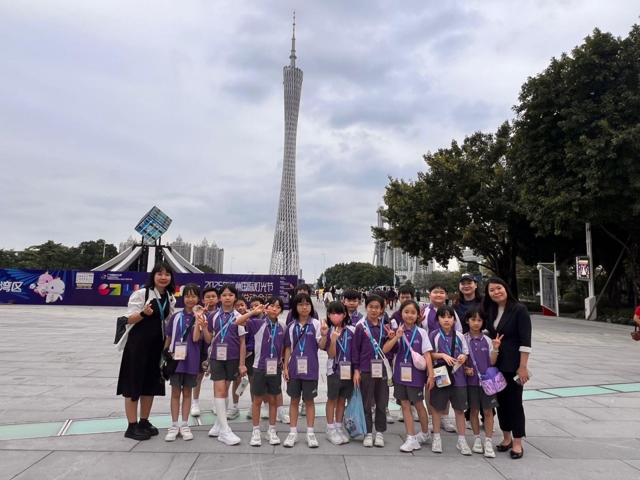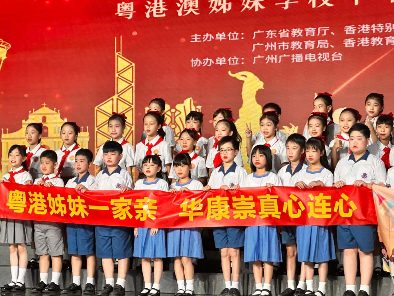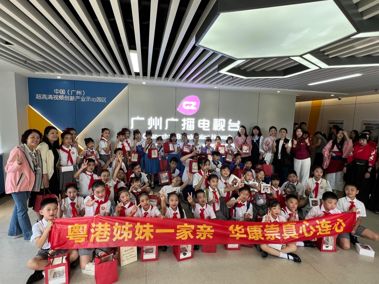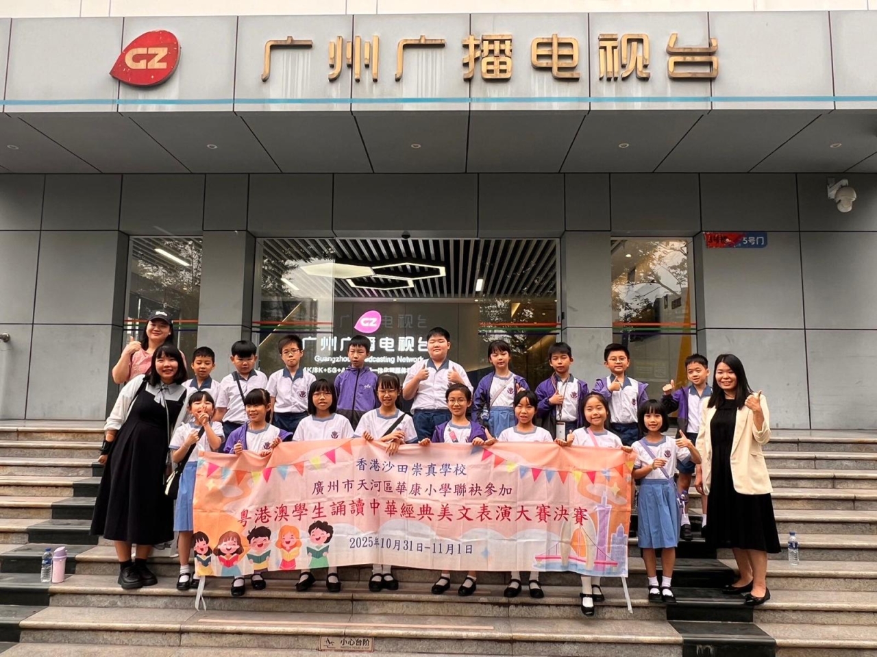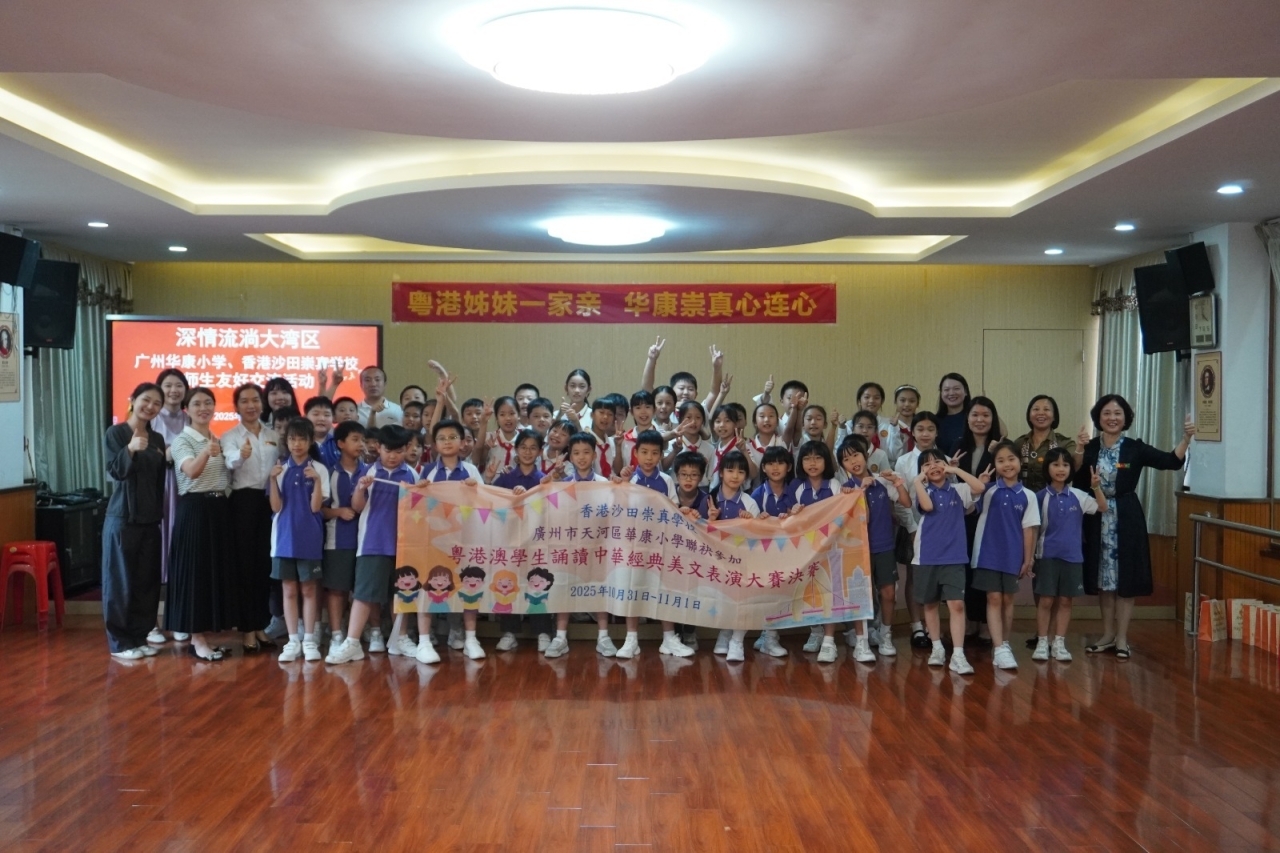 本校17位三至五年級美文集誦隊員赴廣州與姊妹學校——「廣州市天河區華康小學」的學生聯袂參加「2025年粵港澳學生誦讀中華經典美文表演大賽暨粵港澳姊妹學校中華經典美文誦讀比賽(廣州)」,並於廣州廣播電視台進行比賽錄製。