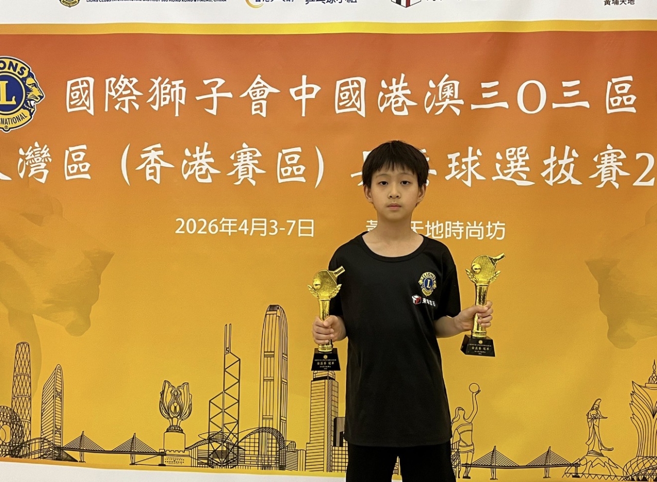 國際獅子會中國港澳303區大灣區(香港賽區)乒乓球選拔賽2026:男子單打u11冠軍。