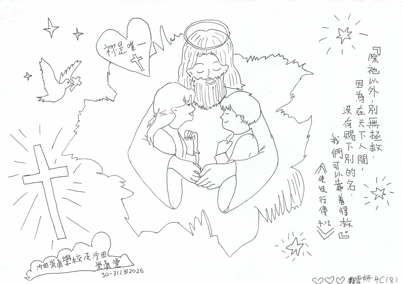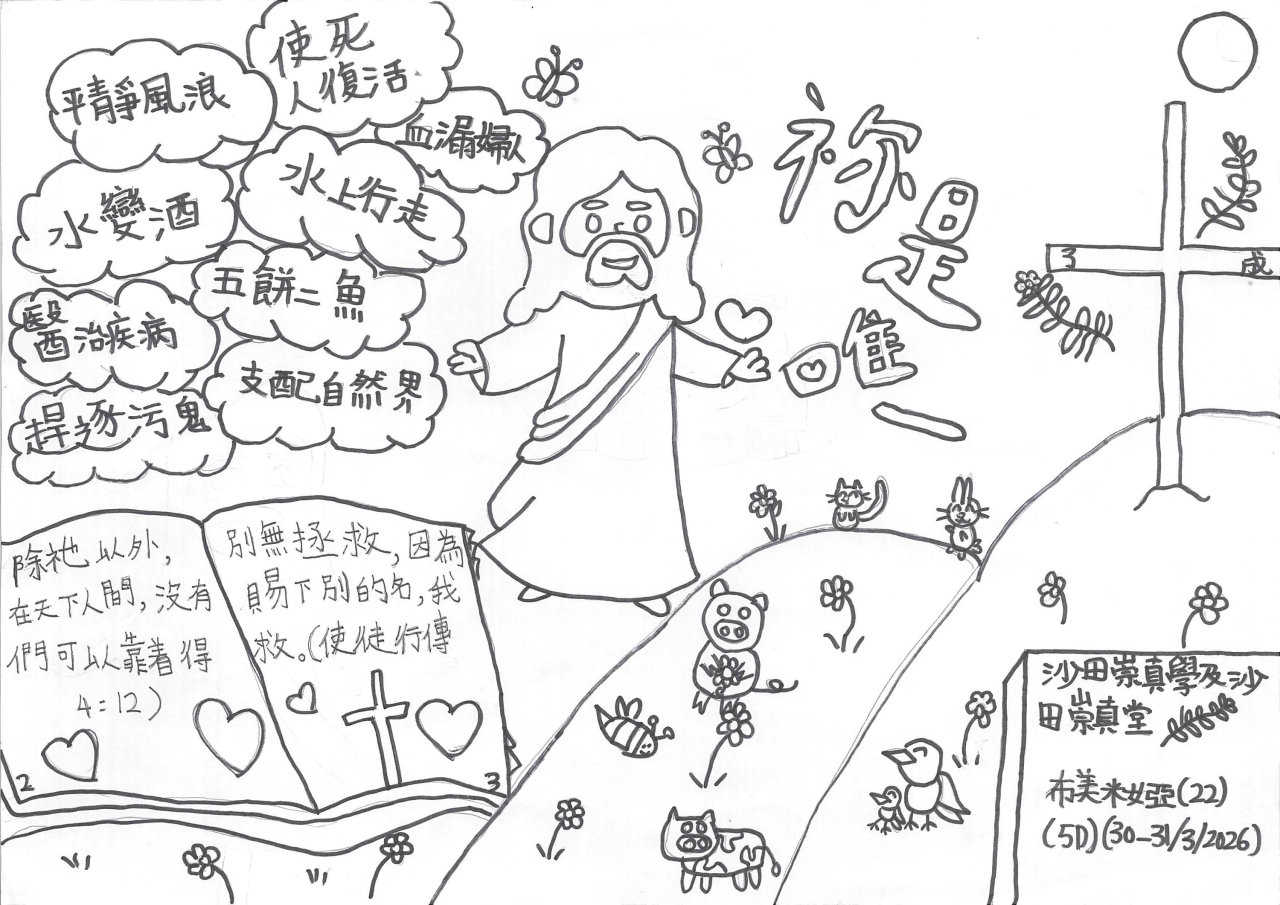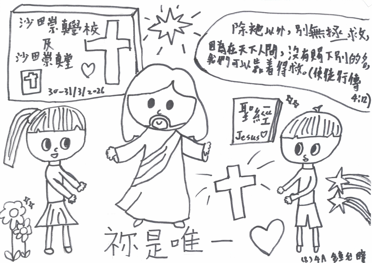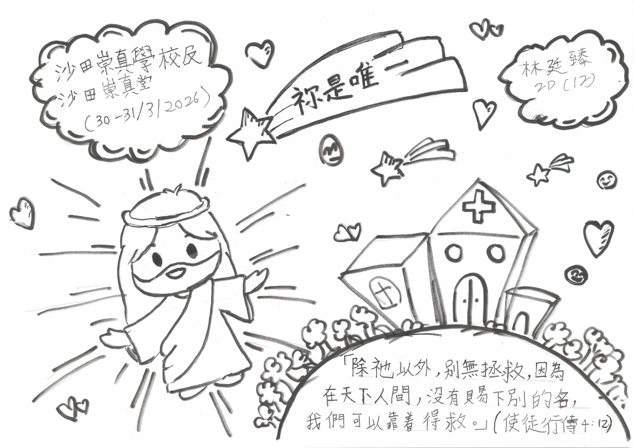 一連兩天的福音周終於完滿結束,今年主題是「祢是唯一」,活動包括聖經問答比賽、創意寫作、手工、書展、歷奇、填色及書法、手冊遊戲及解碼、佈道會及復活節崇拜。同學透過不同的活動,認識主耶穌就是唯一拯救我們的主,並且願意在佈道會中決志信主,讓生命得著改變。